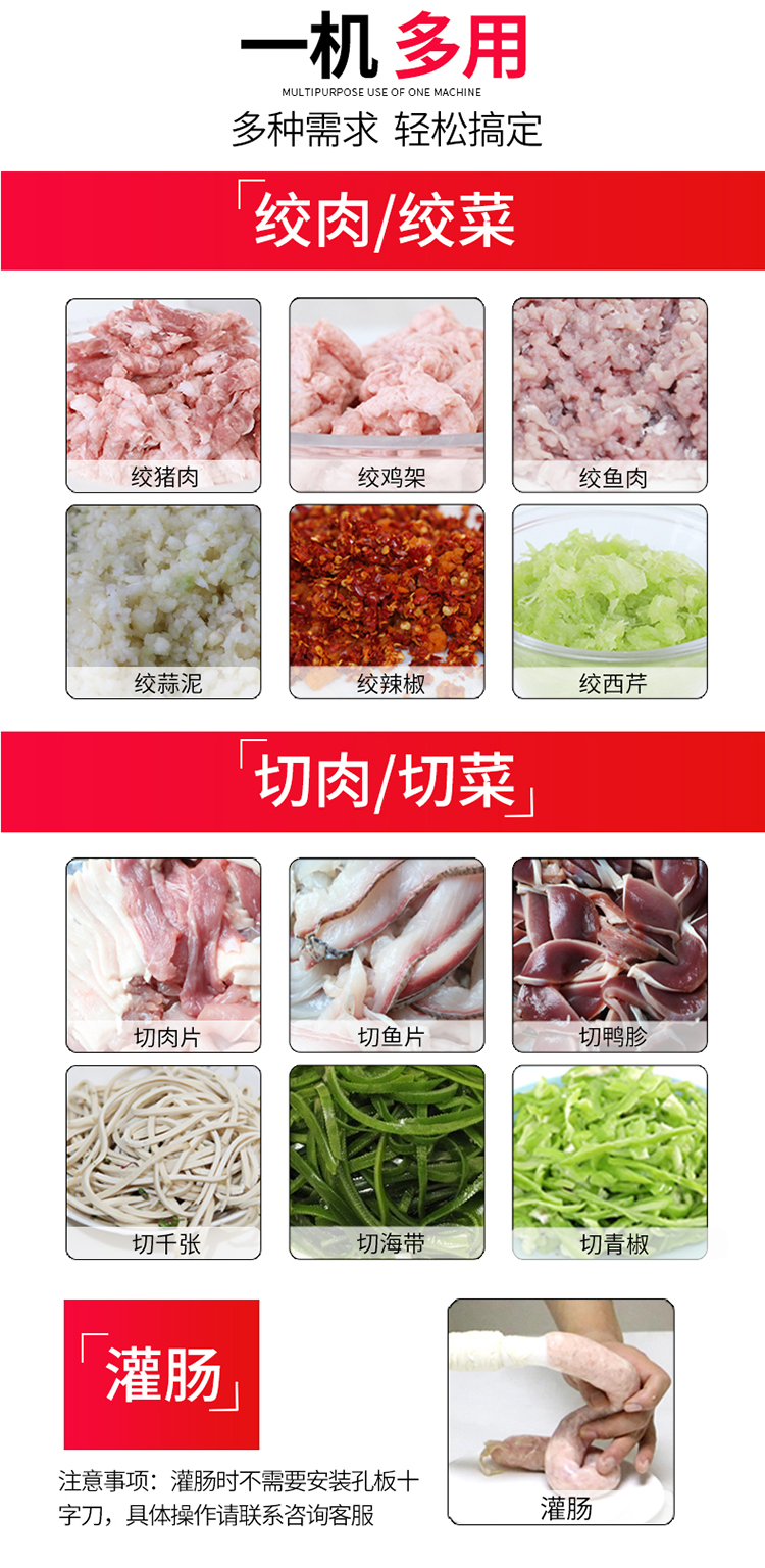 四、绞切两用机不得使用本公司以外的十字刀、孔板、刀片等,由此造成的机器损坏,我公司不负任何责任。