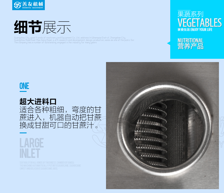 适合宾馆、卡拉OK厅、水果店、冷饮店、凉茶店、车站、超市等服务行业压榨各种甘蔗之用。