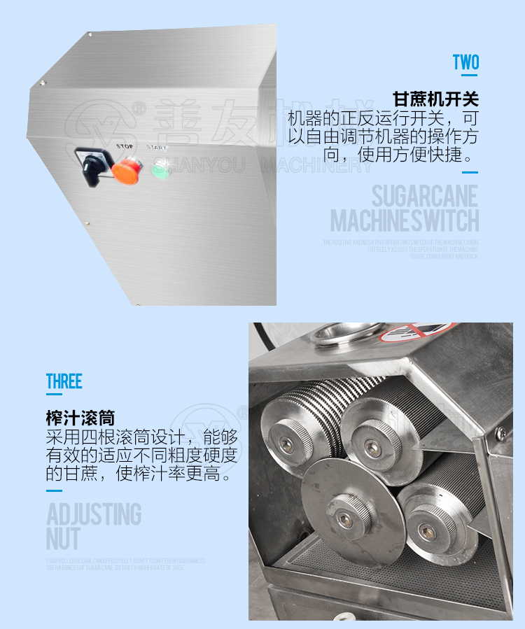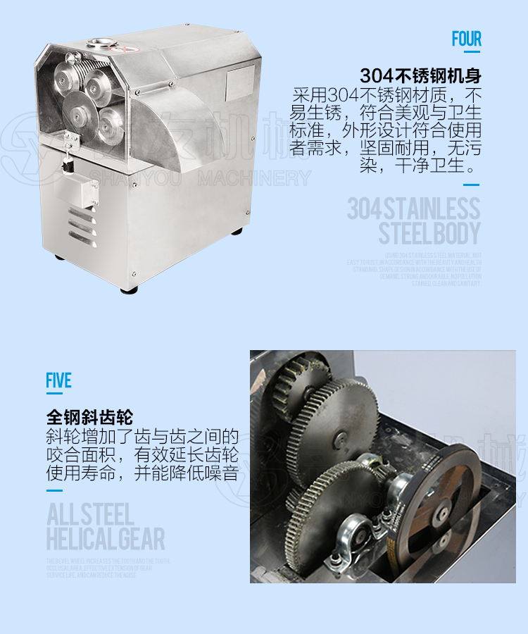 机型: 台式四棍甘蔗榨汁机 电源: 220V/50HZ