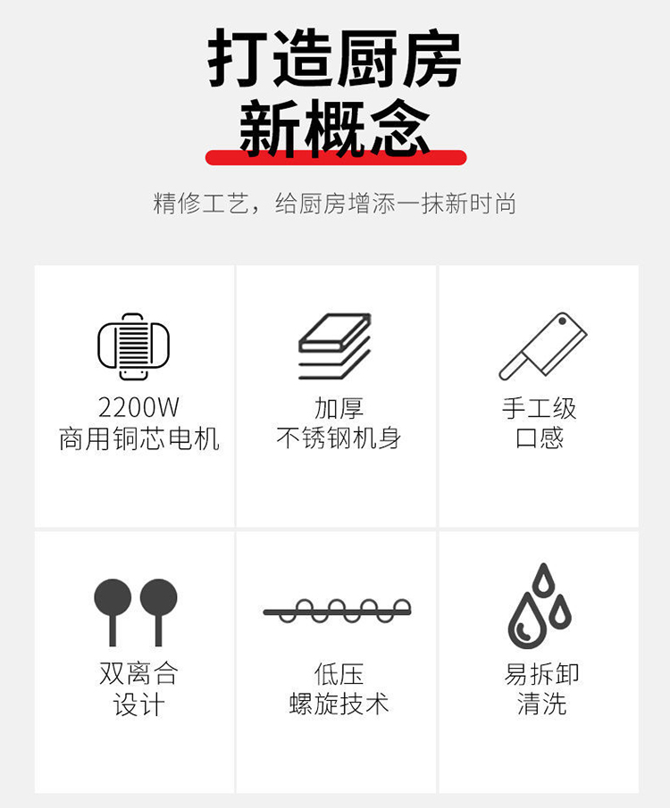 绞切两用机切肉、绞肉两大功能集于一身,具备切肉机和绞肉机各自的特点。